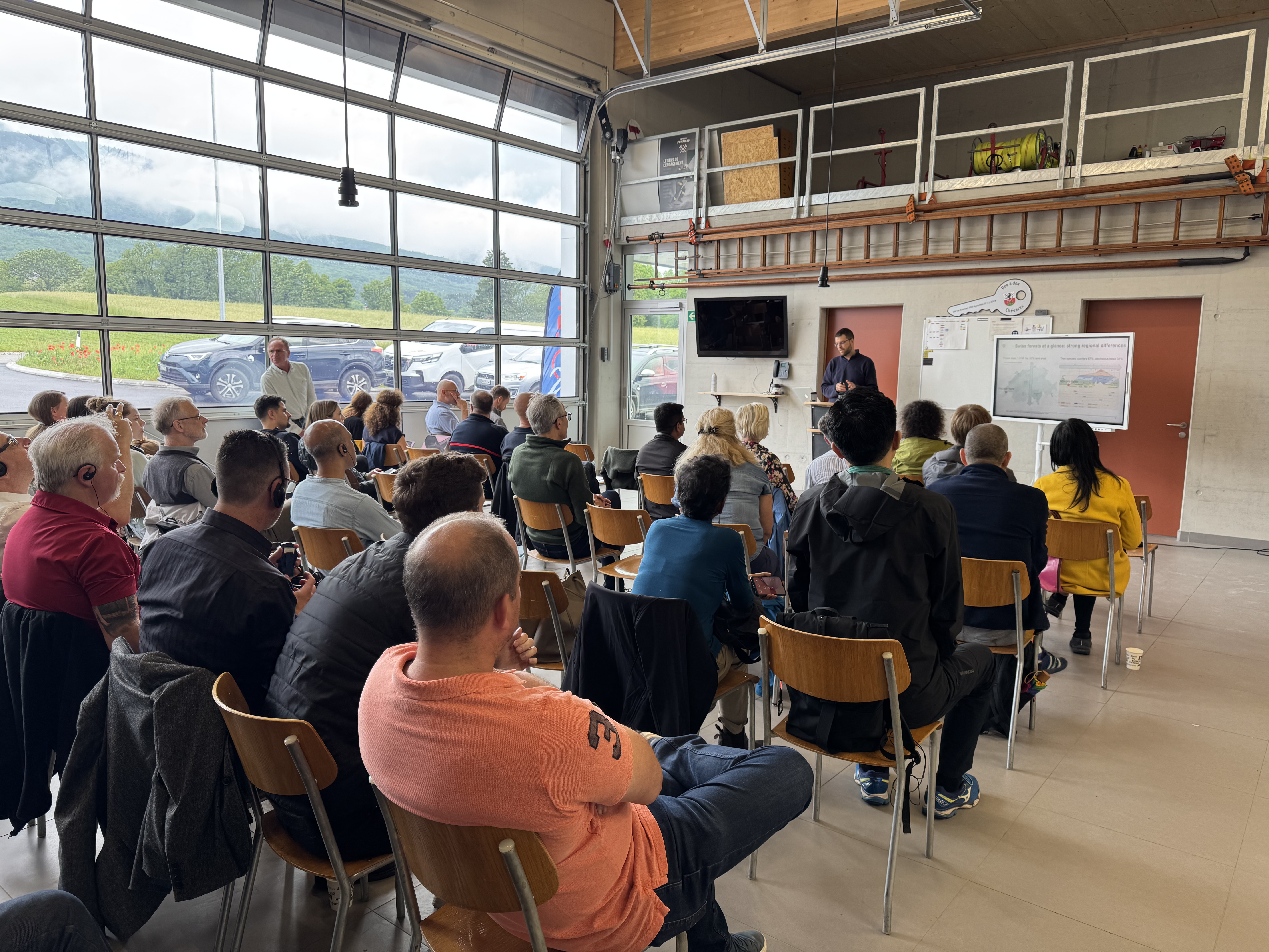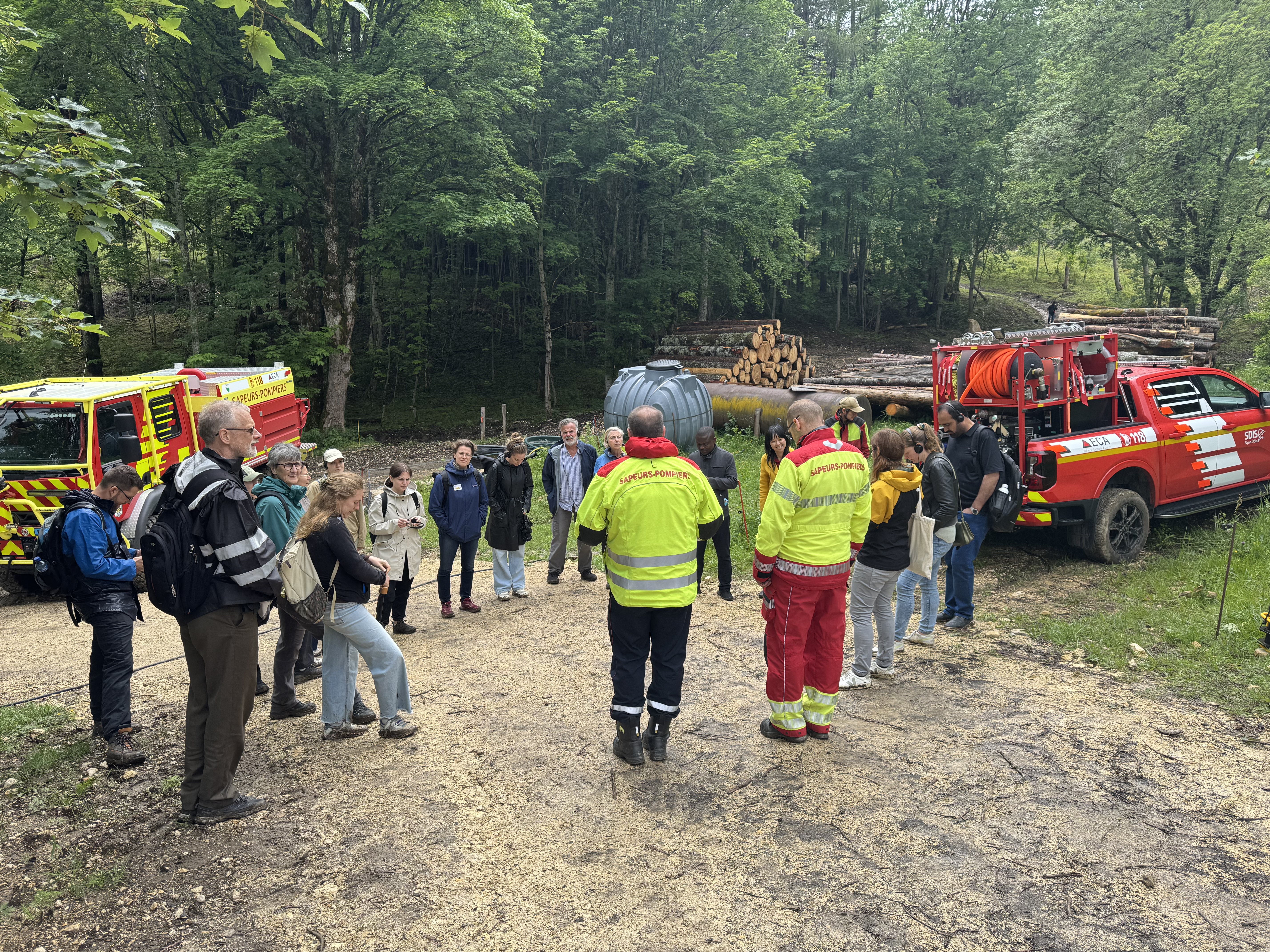The last day, we headed out of the city on a fieldtrip to Nyon-Dôle in Canton Vaud where the cantonal fire service and BAFU shared insights about the multiple governance levels that shape forestry and wildfire preparedness in a federation. We then donned our wet-weather gear and spent the afternoon hiking through the muddy forest of the Jura mountains where foresters, farmers and firefighters generously shared their practices and insights with us.